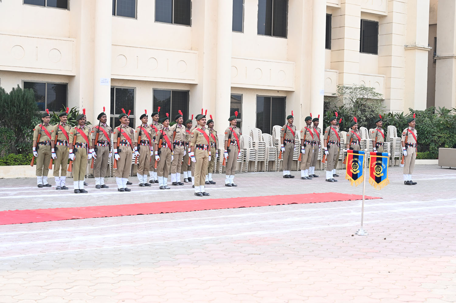 In a grand celebration at Motilal Nehru Stadium, the NCC cadets of Technocrats Institute of Technology (Excellence) marked the 75th NCC Day on 25th November. The event witnessed the esteemed presence of Hon’ble Governor Madhya Pradesh, Shri Mangu Bhai Patel, as the chief guest. The NCC cadets showcased a remarkable ceremonial parade with Band, mesmerizing regional folk dances, and demonstrated impressive warfare tactics, captivating the audience in attendance.